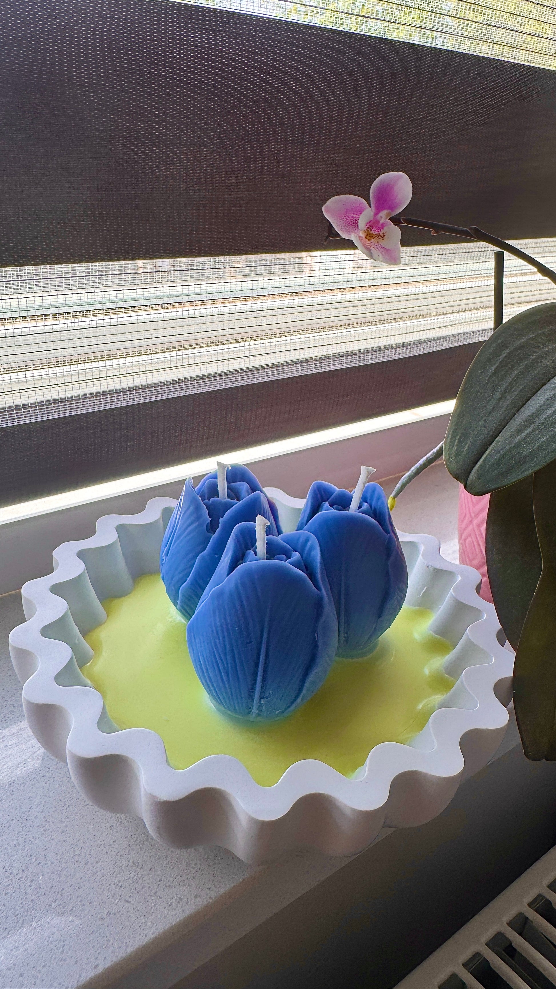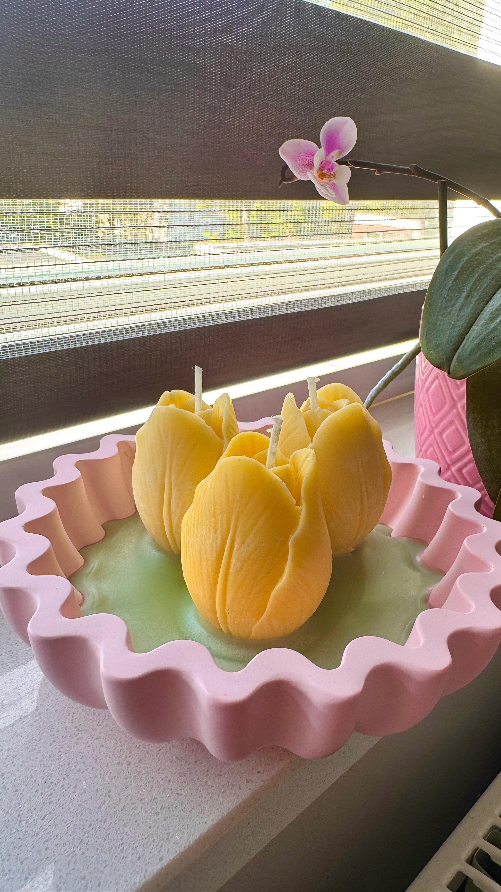 Breng de lente in huis met deze unieke “Tulip Garden” kaarsenset. Elke kaars is met de hand gegoten in de vorm van een delicate tulp, perfect passend in een zachte, roze bloemvormige schaal met een frisgroene bodem. Deze set straalt zachtheid, romantiek en natuurlijke schoonheid uit — ideaal als eyecatcher op tafel of als bijzonder cadeau.
